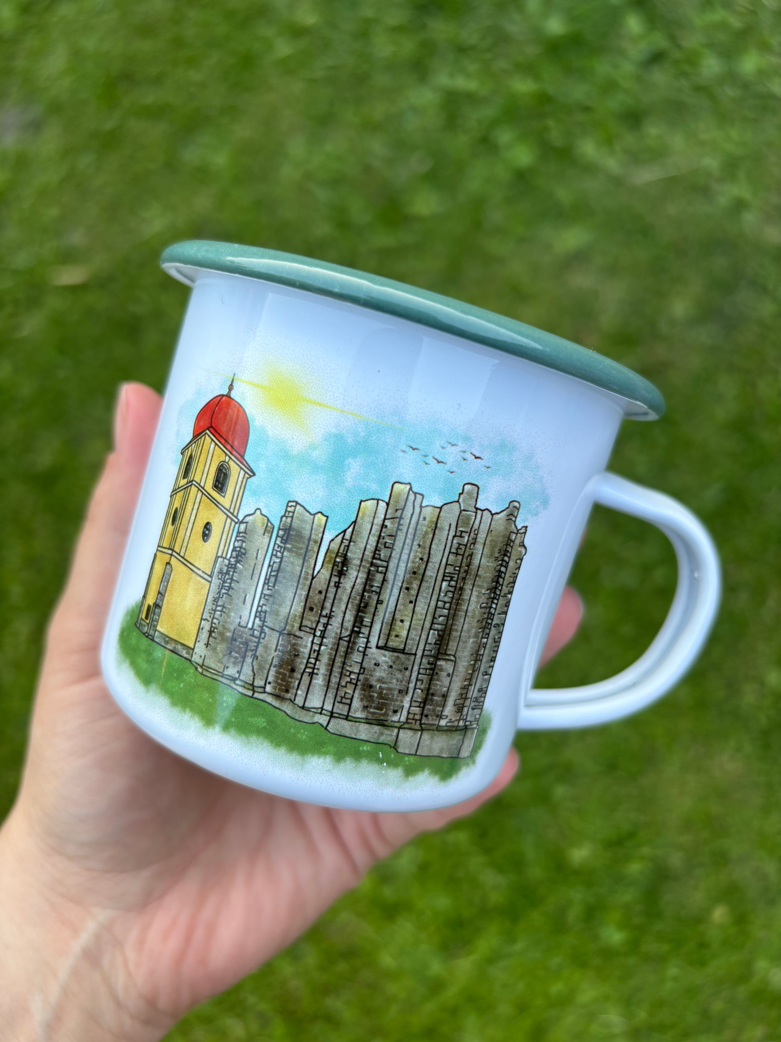 Smaltovaný plecháček potištěný mou vlastní ilustrací. Každý kus vzniká kompletně pod mýma rukama – od návrhu ilustrace až po finální potisk v malé dílně na Hříškově. Každý kus je tak výsledkem pečlivé a poctivé ruční práce.