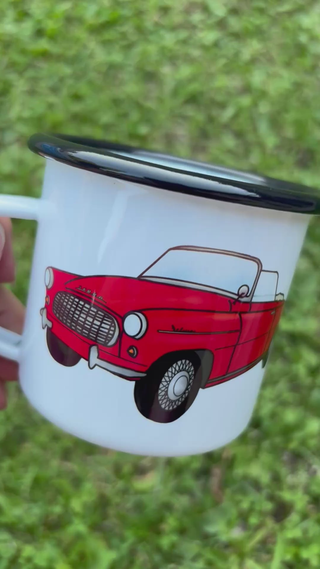 Smaltovaný plecháček potištěný mou vlastní ilustrací. Každý kus vzniká kompletně pod mýma rukama – od návrhu ilustrace až po finální potisk v malé dílně na Hříškově. Každý kus je tak výsledkem pečlivé a poctivé ruční práce.