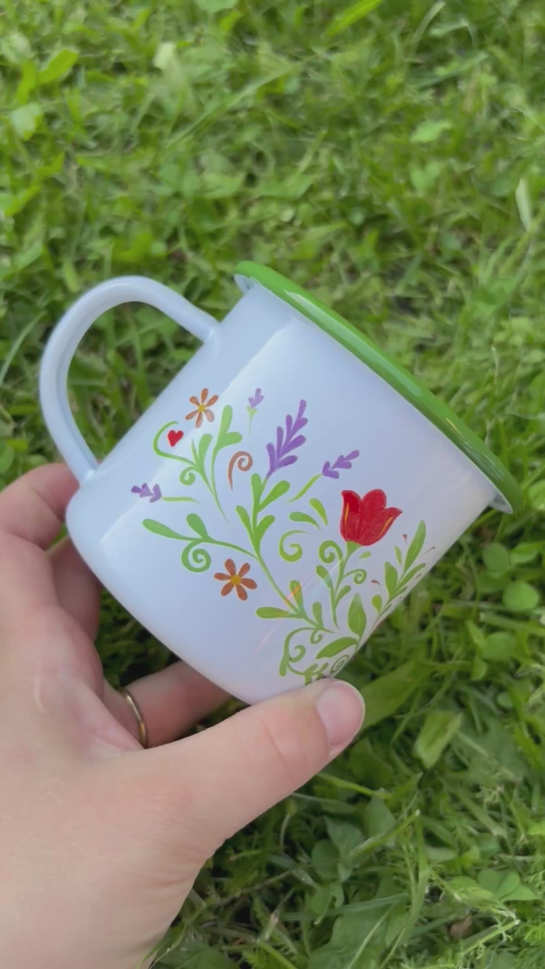Smaltovaný plecháček potištěný mou vlastní ilustrací. Každý kus vzniká kompletně pod mýma rukama – od návrhu ilustrace až po finální potisk v malé dílně na Hříškově. Každý kus je tak výsledkem pečlivé a poctivé ruční práce.